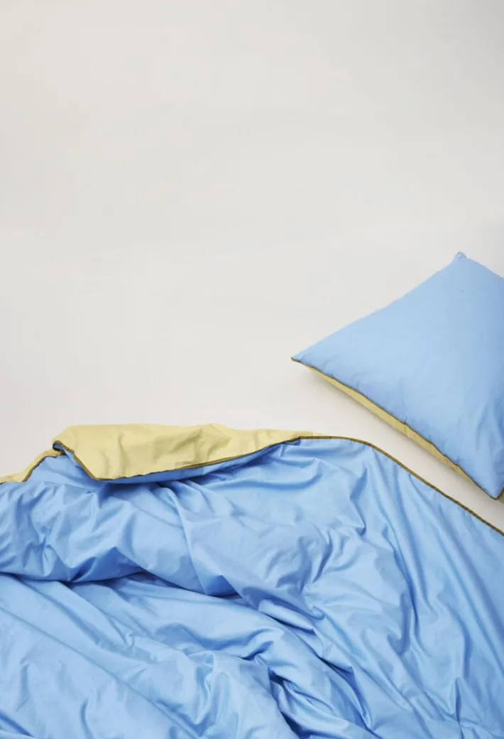 This crisp reversible bedding set will make you sleep like a baby. The set features a cool blue with a contrasting yellow and a cheeky brown trim, enabling you to create two different looks in your bedroom. Made from 100% OEKO-TEX® STANDARD 100® cotton percale, this set is so crisp and comfy that it will make it very hard for you to get out of bed in the morning; unless you have delicious coffee waiting.