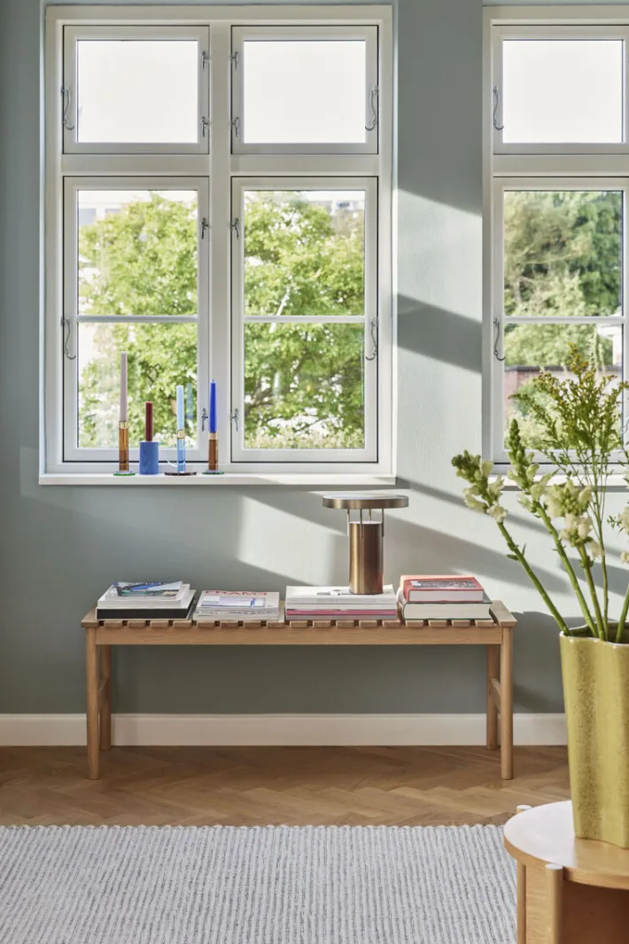 A candleholder with a geometrical yet simplistic shape is always eye-catching. Add a bold colour combination in soft pin…