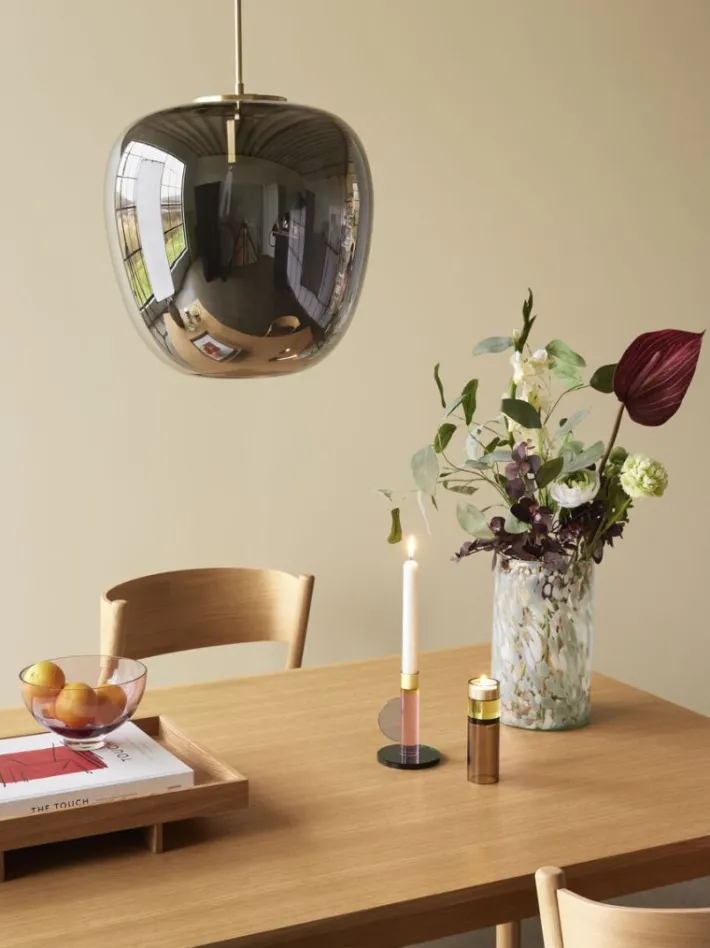 A candleholder with a geometrical yet simplistic shape is always eye-catching. Add a bold colour combination in soft pin…