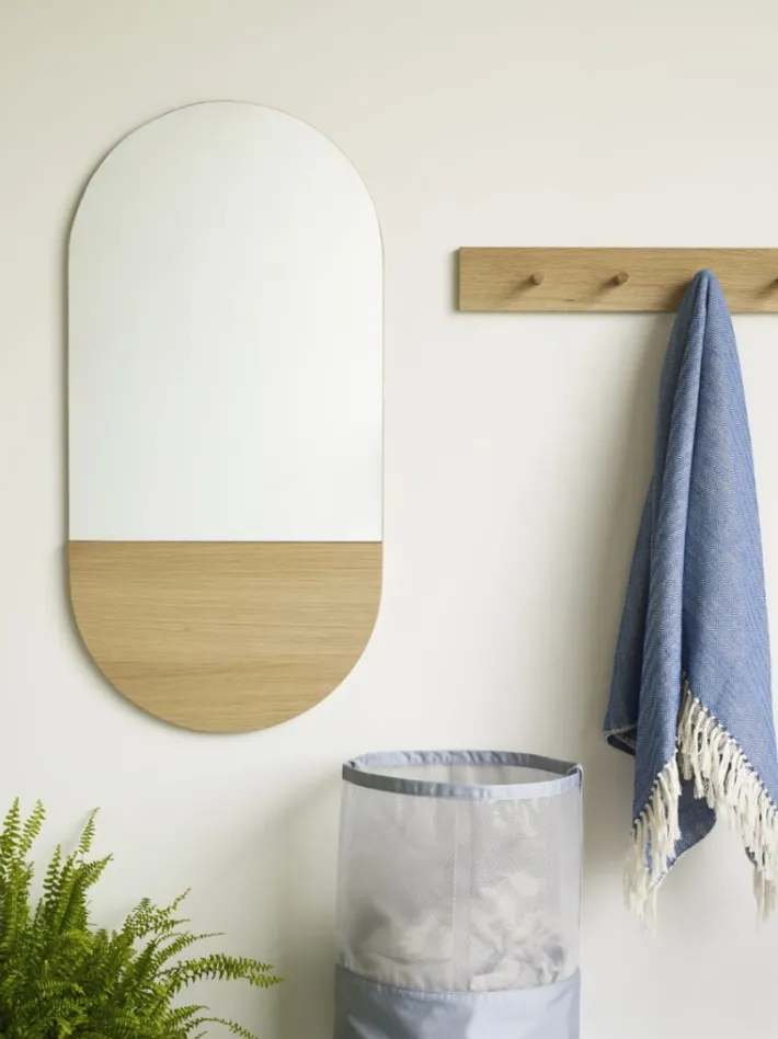 This coat rack is made of FSC-certificed oak. It has four hooks for hanging clothes or towels. The coat rack can be hung in the bedroom, hallway or in the bathroom.