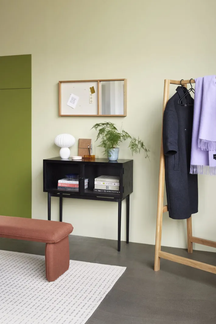 Take a seat – you don’t have to make a reservation. This red upholstered bench has a striking and stylish lo…