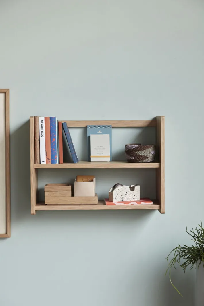The shelf is made from oak and is FSC certified. Its minimalistic and classic design make it easy to combine this shelf with many different styles of interior. Its clean design makes the shelf versatile in its placement and function.