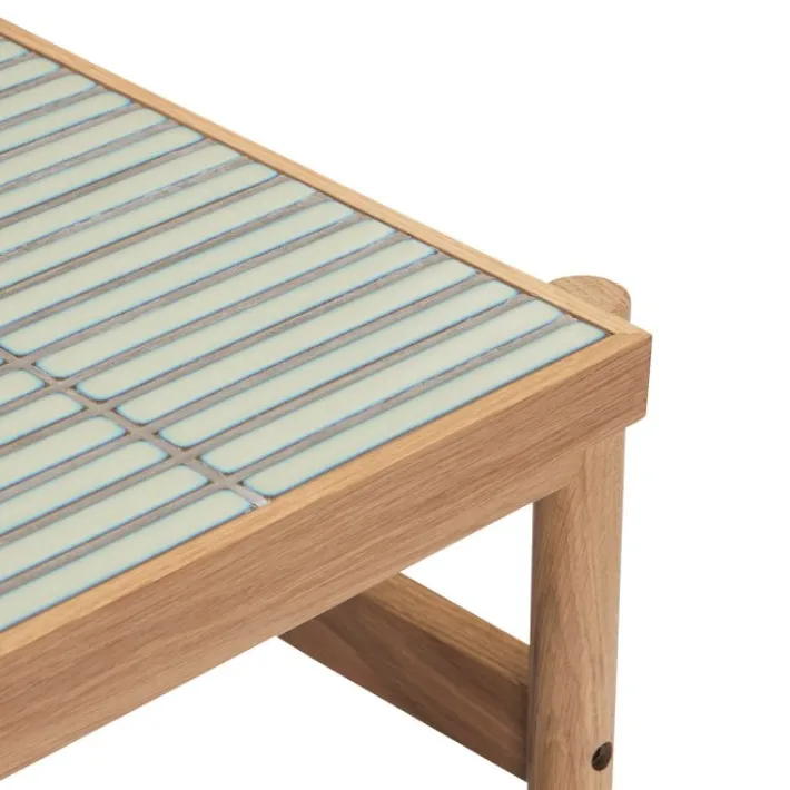 Introducing the Tile Side Table, a must-have piece for any modern home. Available in two stunning variants, this one features a refreshing mint colour on its tabletop, adding a pop of color to any room. Crafted from FSC-certified oak veneer and oak wood, this table not only boasts a unique design approach, but also ensures sustainability. Its tiles in mint colour create a nostalgic memory of childhood furniture, while the new material combination adds a touch of sophistication. Add personality to your interior with this modern design masterpiece.